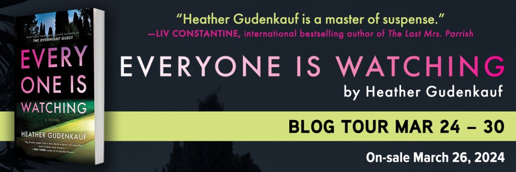 “No wonder Heather Gudenkauf is one of my favorite authors. Everyone Is Watching is a unique, original, compelling, and absolutely binge-worthy read. I couldn’t inhale the pages fast enough to find out what was going on in this mysterious high-stakes televised game. It’s Big Brother meets Survivor meets a bucketload of Machiavellian twists, and this knock-out book is sure to be a hit!” —Hannah Mary McKinnon, internationally bestselling author of The Revenge List.